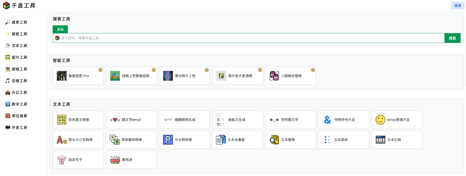 1. 丰富的工具集:千盒工具提供各种实用工具,包括图像、视频、文本、数字、开发等方面,无论是工作、学习还是日常生活,都可以为您提供帮助。