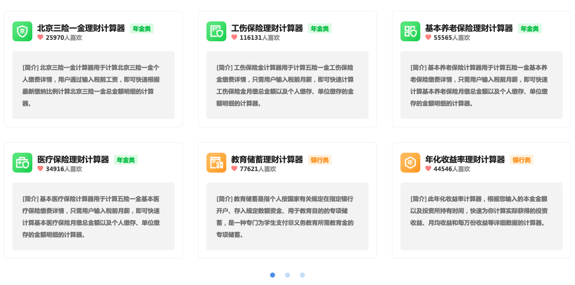 • 分类系统极其精细。本网站汇集了数百台与金融管理密切相关的计算器,涵盖了各种需求,包括但不限于抵押贷款计算器、汽车购买贷款计算器、股票市场分析工具、基金收入预测器和税务规划计算器。