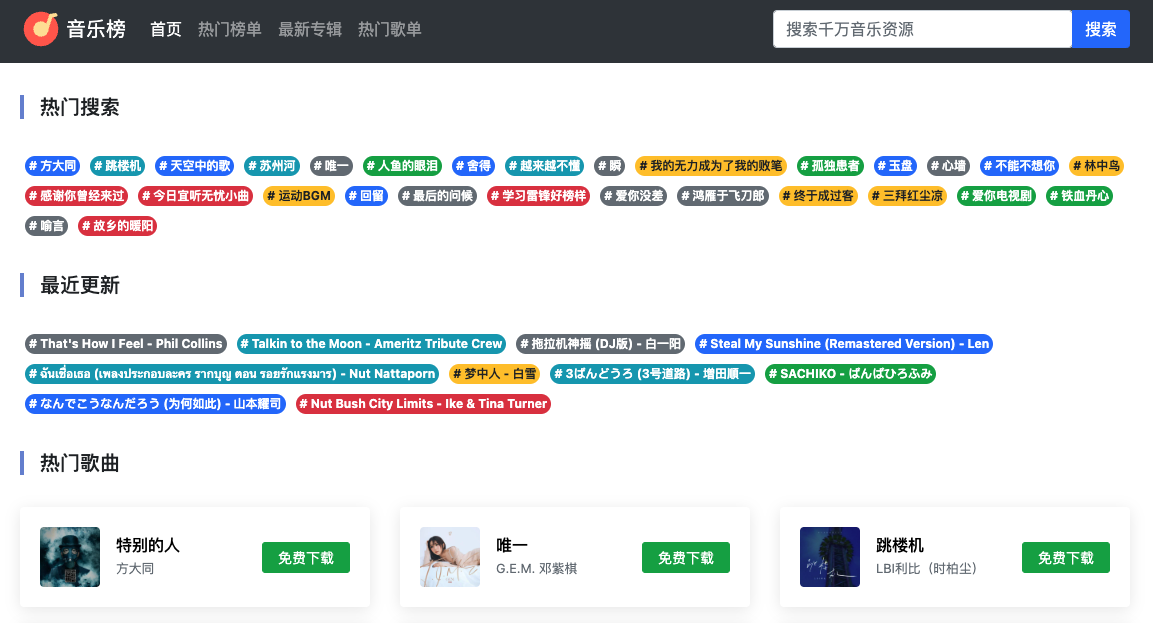 音乐榜为在线音乐搜索引擎MP3付费歌曲、流行音乐和经典老歌提供免费下载服务。其音乐库资源丰富、完整,更新速度快,试镜体验流畅。此外,该引擎还支持高质量和无损的音乐播放,以满足用户对音质的不同需求。