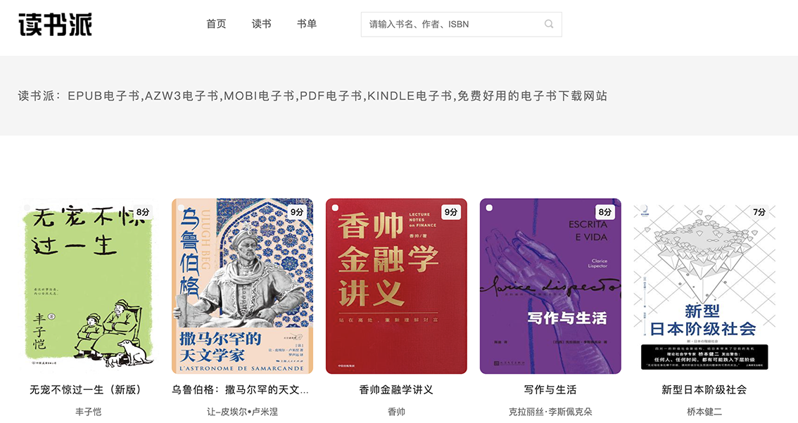 读书派是一个特色电子书下载服务平台,其特点主要体现在以下几个方面: