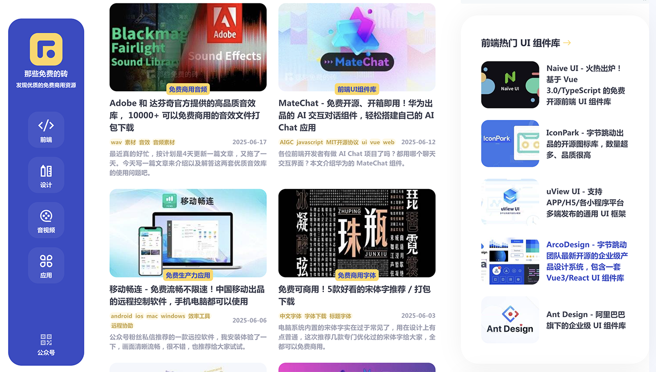 综上所述,“那些免费砖”无疑是一个非常实用的网站,适合各种创作者和开发者。它不仅提供了大量的免费资源,还帮助用户更有效地利用这些资源,从而提高工作效率和创作质量。