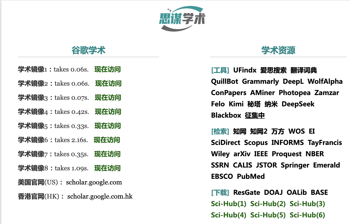 该网站是一个学术工具导航网站,汇集了谷歌学术,Sci-Hub镜像和许多其他学术资源,以及其他多样化的学术工具。无论你是学生、学者还是研究人员,这个网站都将是你在学术旅程中的有效合作伙伴,帮助你轻松地在广阔的学术领域旅行。
