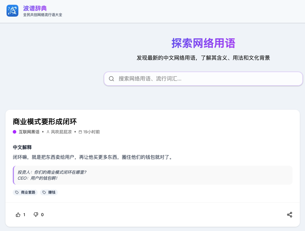 – 文化背景展示:将用法示例和流行起源的阐述融入条目,揭示流行语背后的社会文化背景,为用户提供更丰富的知识背景。